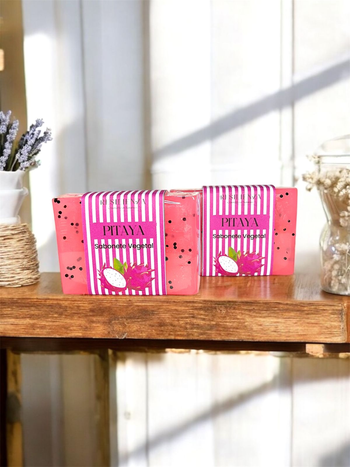 O Sabonete de Pitaya tem um aroma frutado e envolvente, perfeito para quem busca um banho energizante e sensorial. Sua base glicerinada proporciona limpeza suave e maciez e a manteiga de cacau hidrata e acalma a pele, deixando-a macia e radiante.