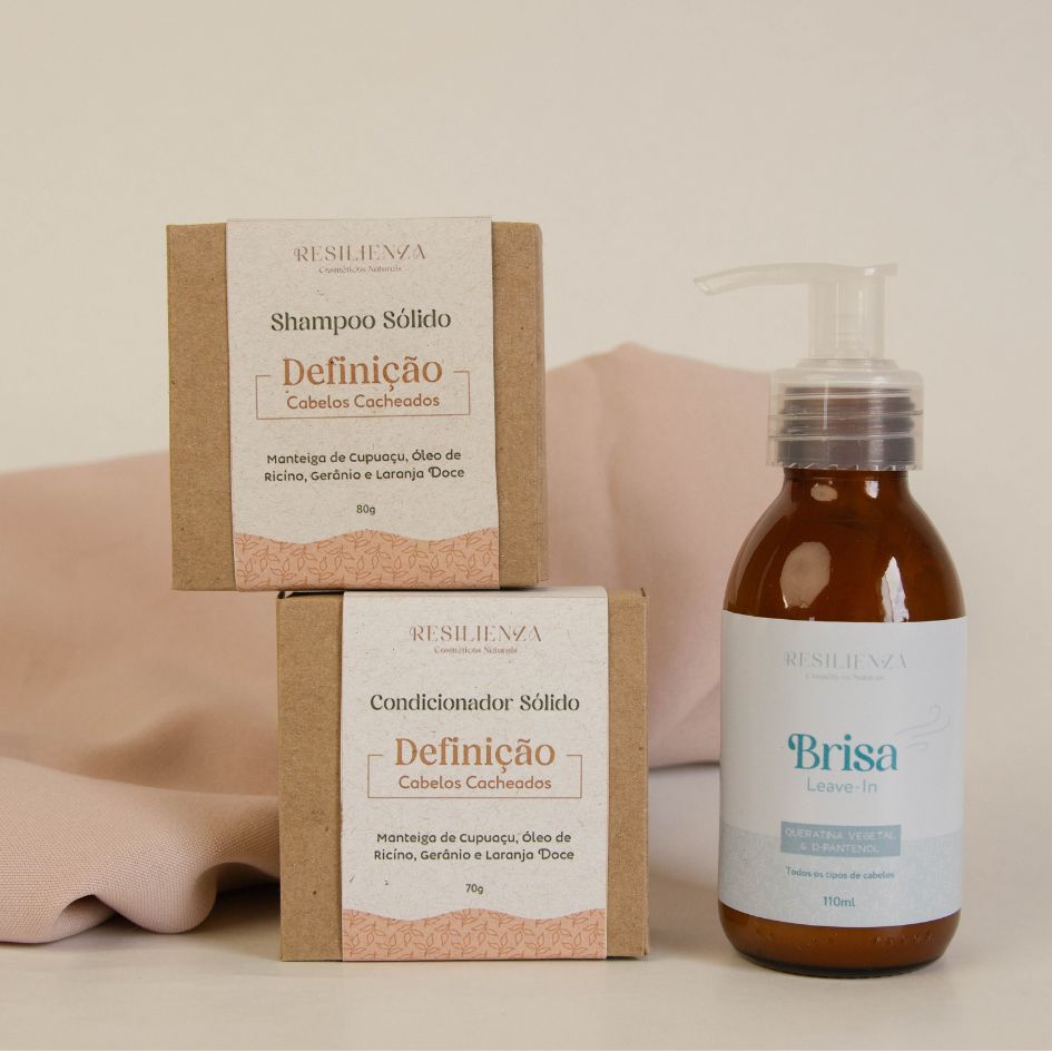 Descubra o segredo para cachos perfeitamente definidos com nosso kit Definição. Desenvolvido para atender ás necessidades específicas dos cabelos cacheados, nosso kit e composto por três produtos: Shampoo e condicionador em barra Definição e o leave in Brisa.